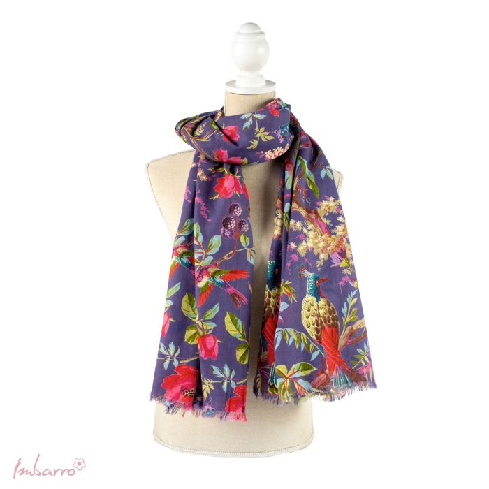 Heerlijke grote paarse shawl gemaakt van zacht katoen in de unieke Paradise print. In vier verschillende kleuren verkrijgbaar. Hét ideale cadeau voor iedere vrouw: persoonlijk, warm en origineel. Geef een shawl van Imbarro cadeau en breng een beetje kleur in het leven.