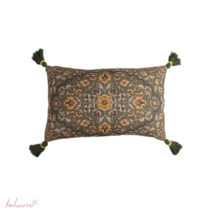 Uniek! Helemaal te gek! Geschikt voor binnen en buiten! Want dit kussen is gemaakt van gerecyclede PET-flessen. Deze geweldige oosterse print is niet meer weg te denken uit het westerse interieur. Een keurrijk & vintage kussen in 3 mooie kleuren.