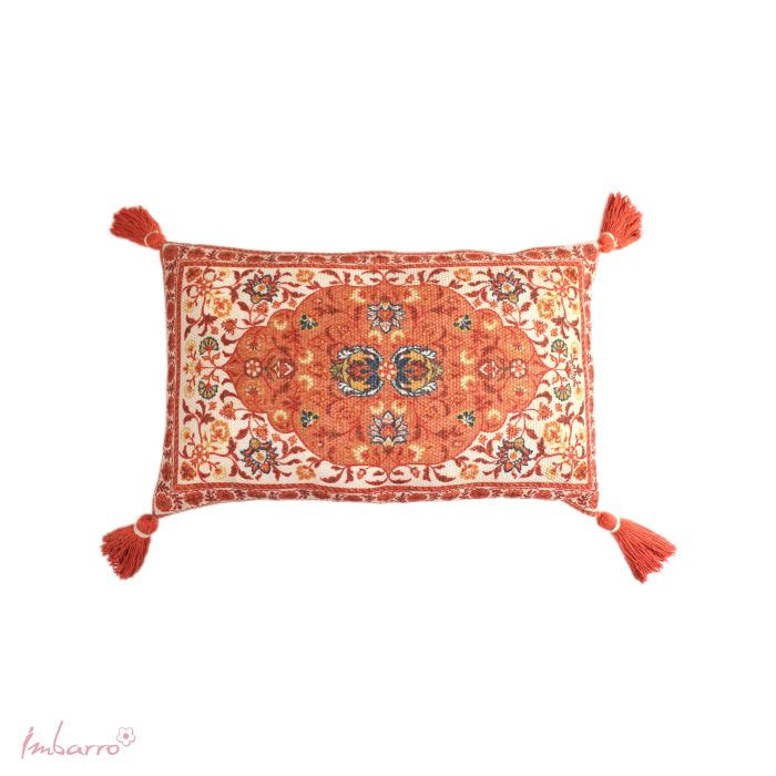 Uniek! Helemaal te gek! Geschikt voor binnen en buiten! Want dit kussen is gemaakt van gerecyclede PET-flessen. Deze geweldige oosterse print is niet meer weg te denken uit het westerse interieur. Een keurrijk & vintage kussen in 3 mooie kleuren.