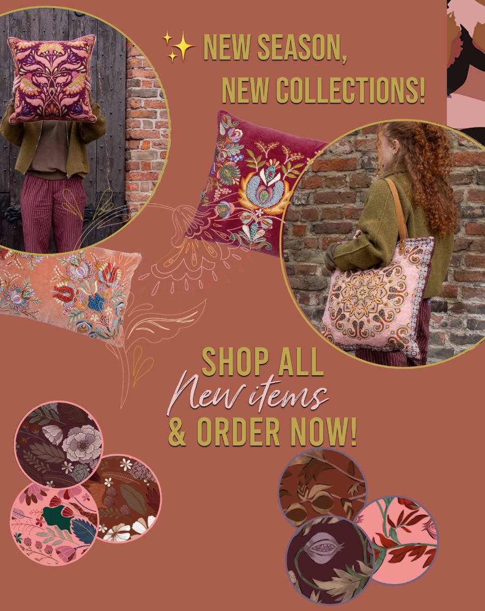 Bloesems in volle bloei.… de geur van de bloemen vult de lucht. Een gaarde vol fruitbomen… Wauw wat een te leuke kussens in onze collectie Fleuri Di Frutta! Felle kleuren en de schoonheid van de natuur, bekijk alle items! Handbeschilderde kandelaren, bowls & schaaltjes van papier maché, het te gekke tafelplateau, de sfeervolle windlichten en nog veel meer in deze geweldige collectie!