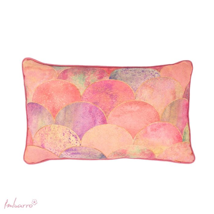 Een kussen als een zomers aquarel, een dans van kleuren die samenvloeien.