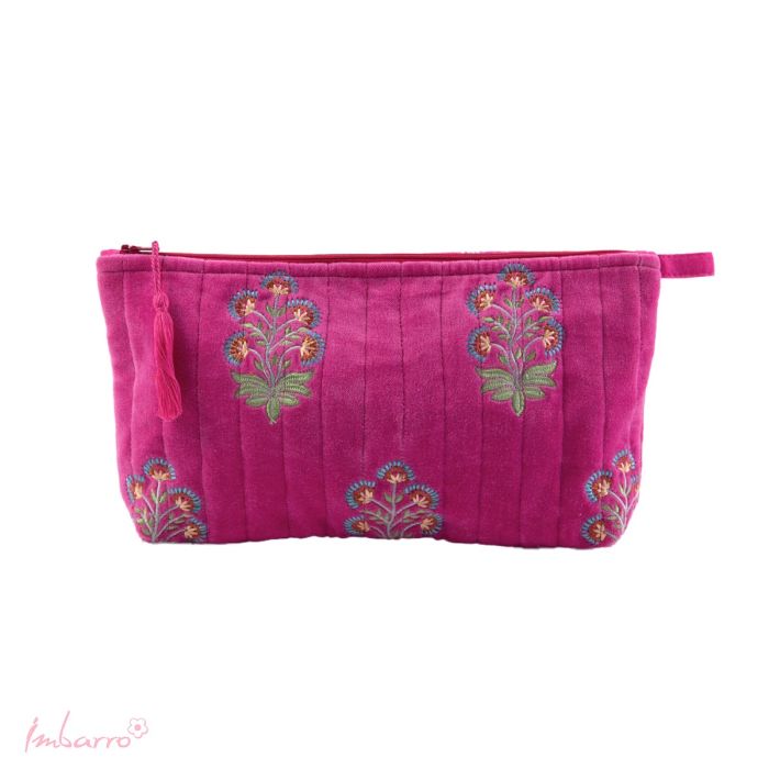 Verliefd op bloemen? Dan is deze pouch echt iets voor jou! De handgeborduurde bloemetjes op zacht velvet geven je elke dag een dosis positiviteit. Hippe doorgestikte lijnen geven een stoer contrast! Perfect voor al je kleine essentials. Ideaal voor je make-up, sleutels of andere kleine spulletjes. Bekijk ook de leuke bijpassende shopper!
